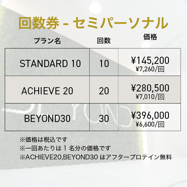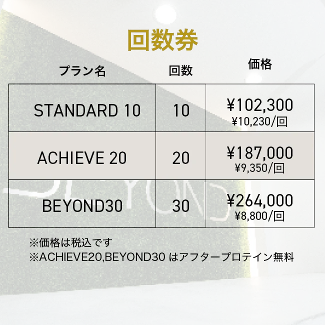 入会金のあるパーソナルトレーニングジムが多い中、BEYONDではより多くの方にパーソナルトレーニングを体験いただきたいという想いから、入会金をいただいておりません。